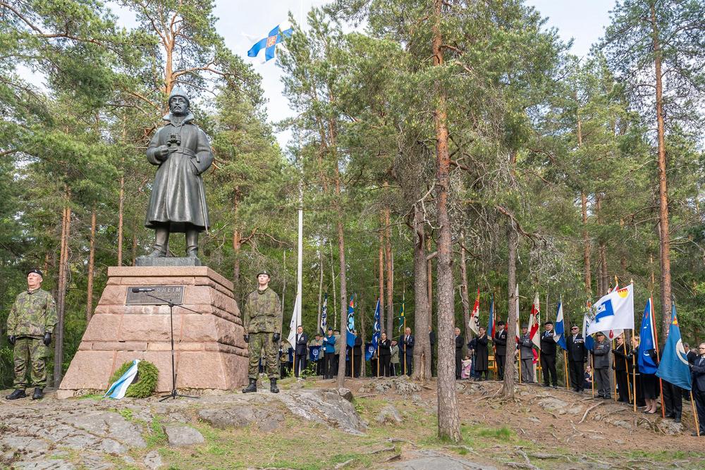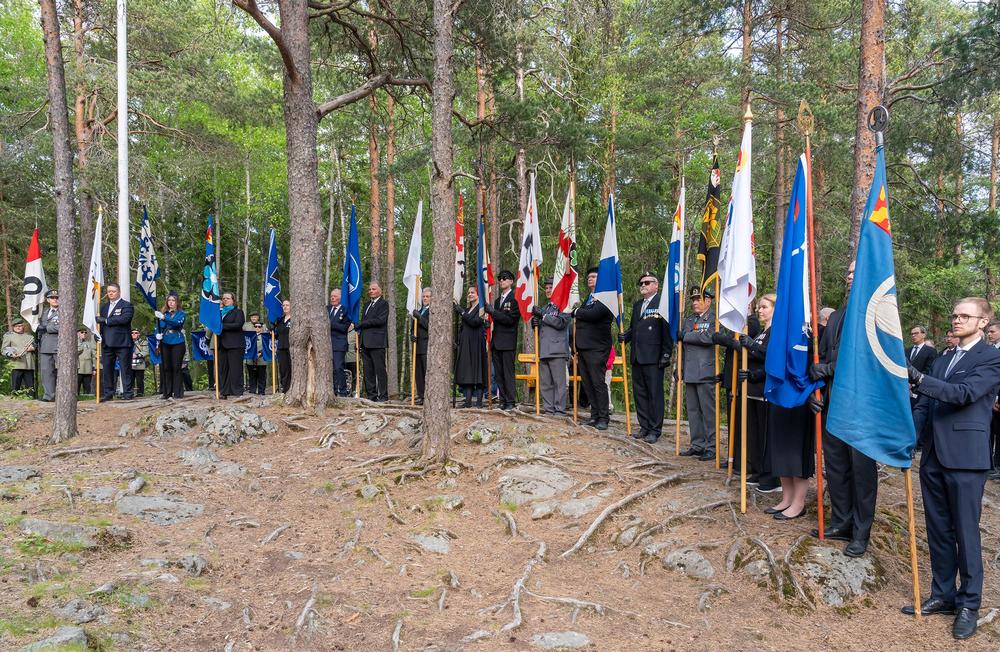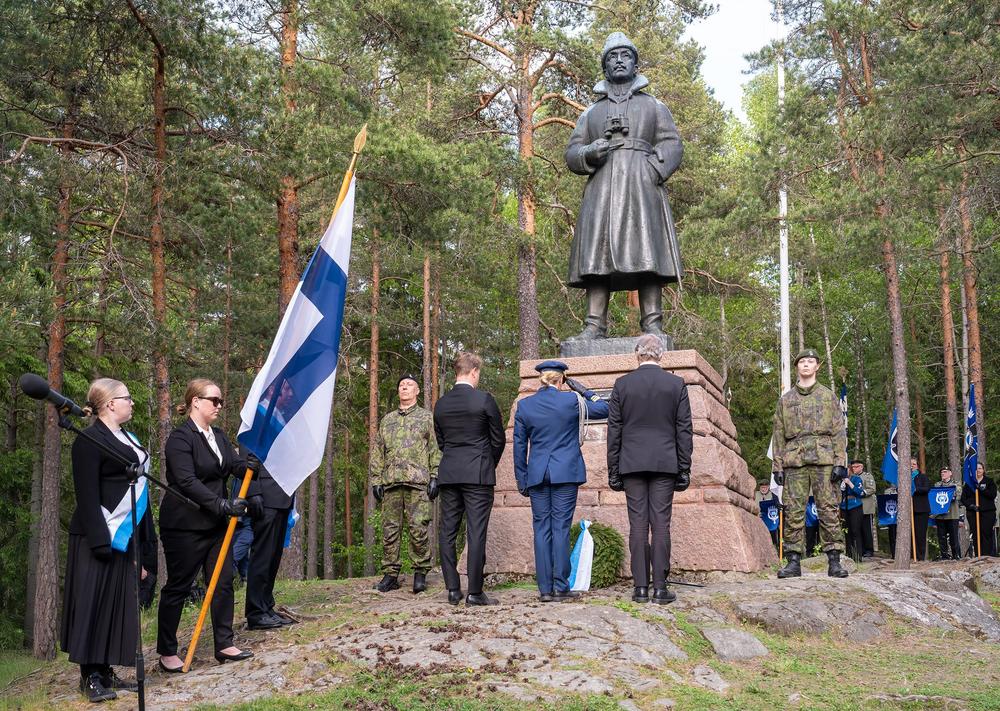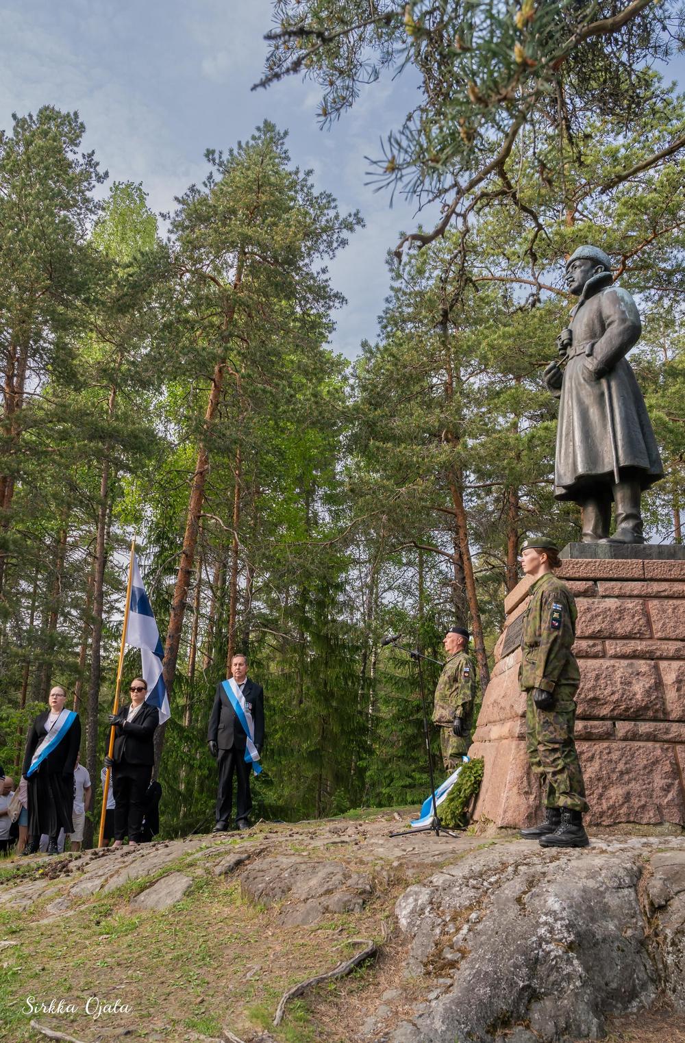 Mannerheimin syntymäpäivän juhlahetki Mannerheimin kalliolla Leinolassa