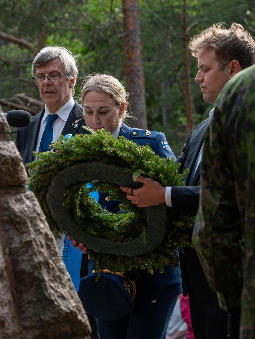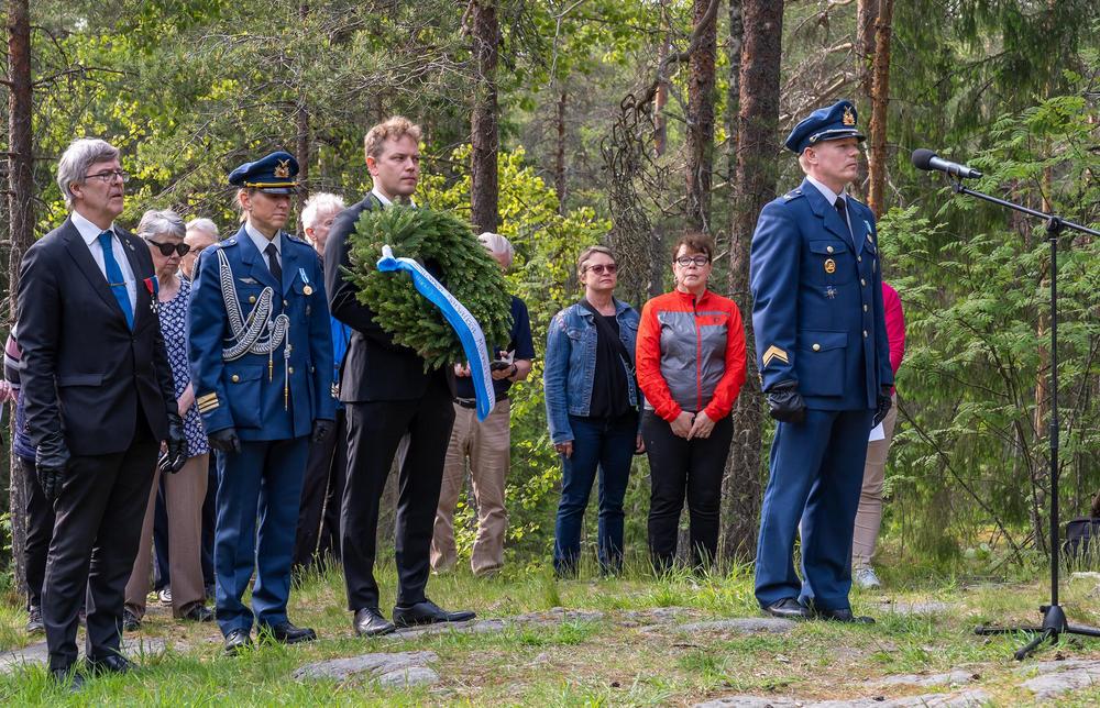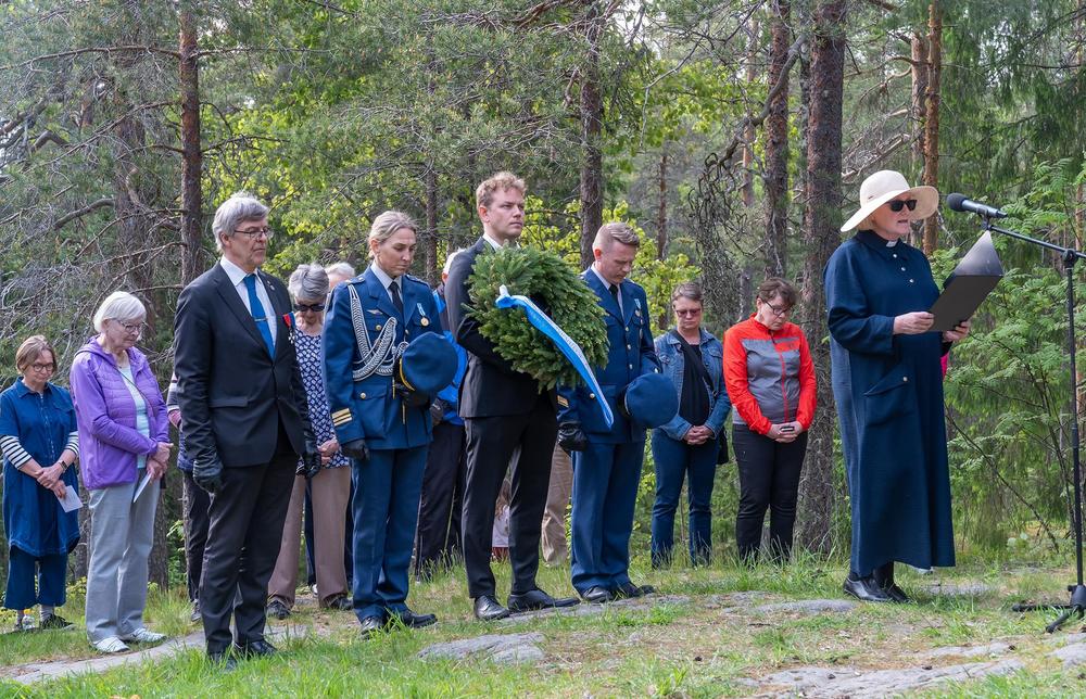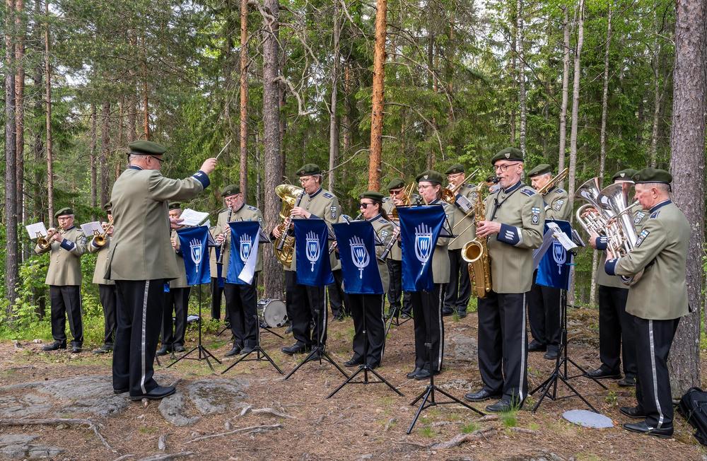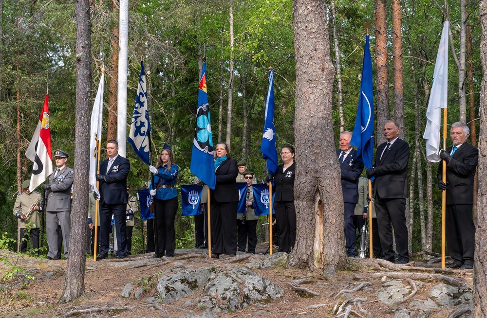 Mannerheimin syntymäpäivän juhlahetki Mannerheimin kalliolla Leinolassa