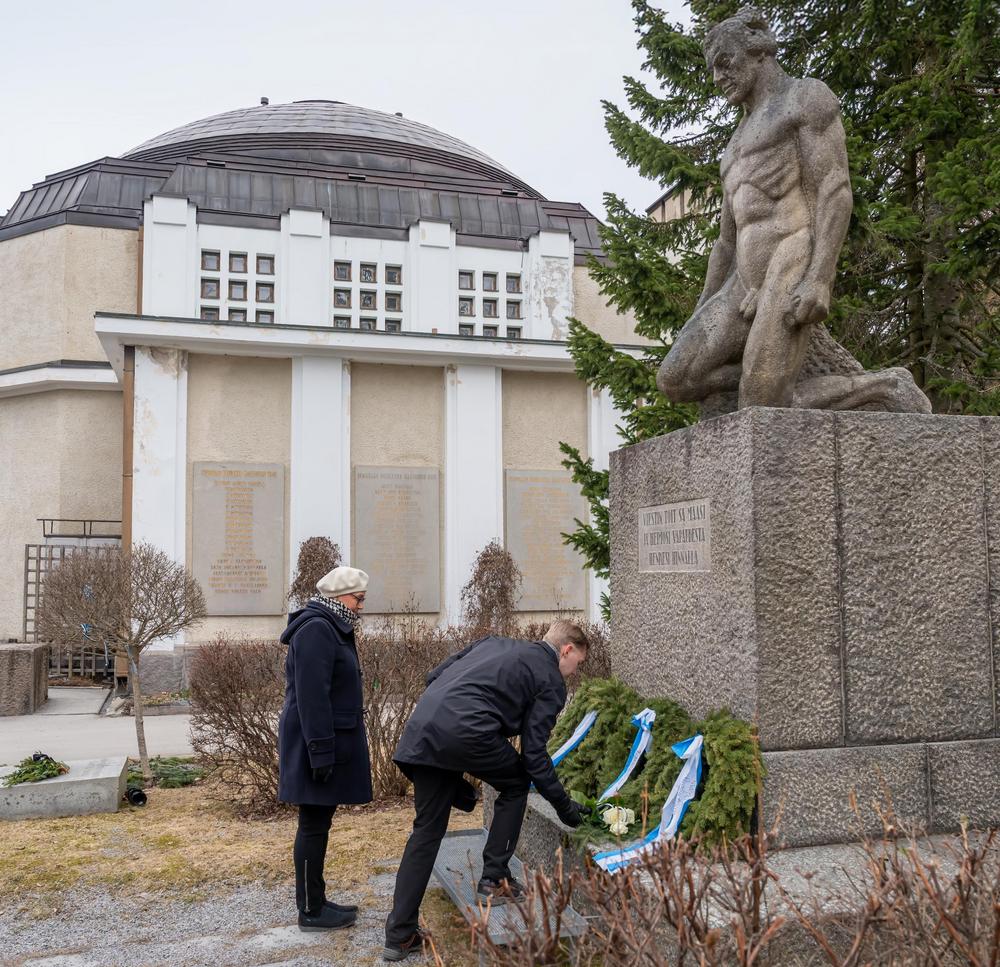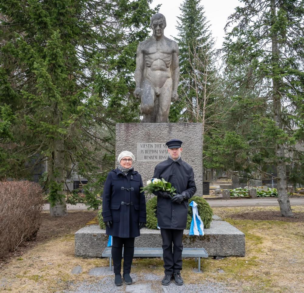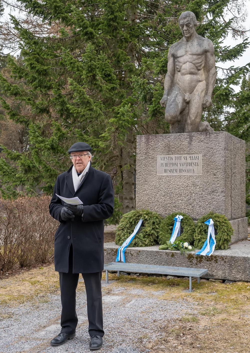 Puheenjohtaja Jouni Koskela, 6.4.2025 Kalevankankaalla vapaussodan sankarihaudalla ja Ruotsalaisen Prikaatin muistomerkillä